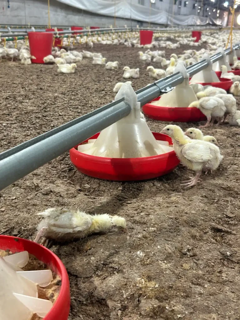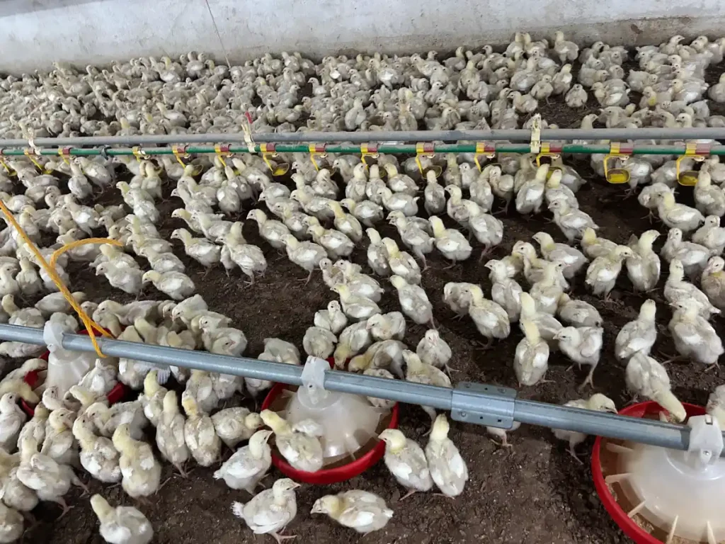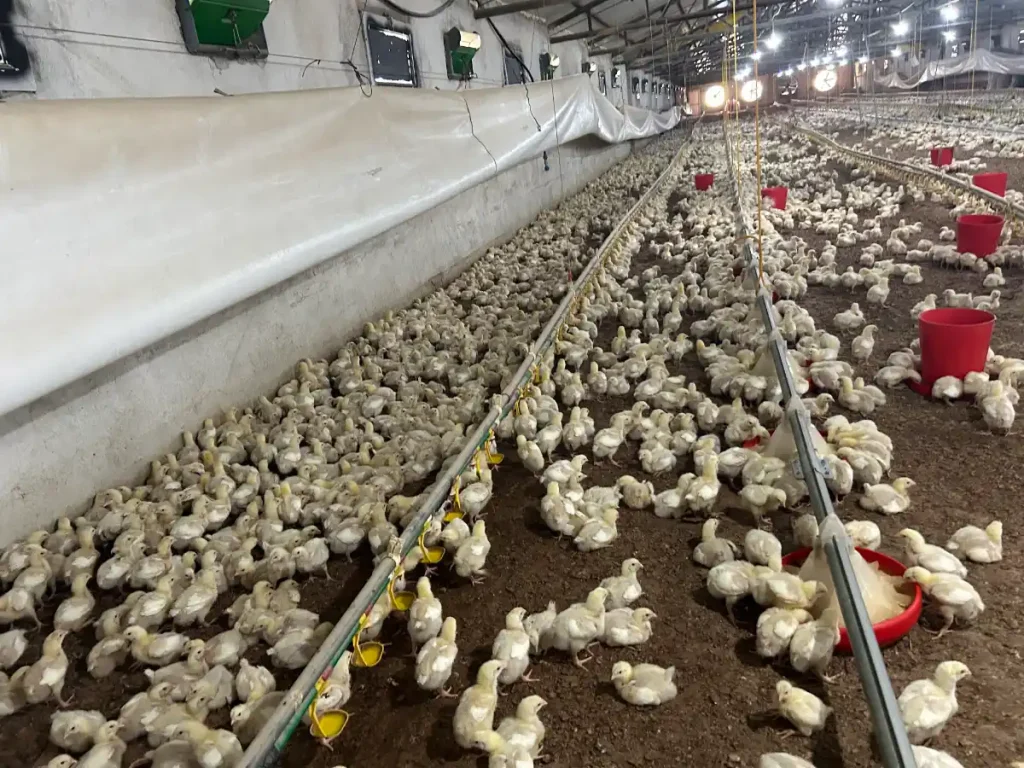 Endüstriyel tavukçuluk sektöründeki tesisler şöyle; kuluçkahane, ticari yumurta tavuğu işletmesi, damızlık tavuk çiftliği, (bizim gezdiğimiz gibi) ticari etlik piliç yetiştirme çiftliği ve kesimhanedir. Bizim gözlemini yaptığımız süreçte civcivler kuluçkahanede doğarlar ve yumurtadan çıktığı gibi konveyörler ile kasa başına ortalama 80 civciv olarak bir araya toplanıp kamyonlara yüklenerek yetiştirme çiftliklerine götürülürler. Çiftliğe geldiklerinde henüz birkaç saatlik civcivler ilk yemlerini ve sularını burada yiyip içerler. On binlercesi bir arada kesimhaneye götürülecekleri güne kadar dikdörtgen yapıda 1000-1500 metrekare gibi bir genişlikteki barınakta otomatik sistemler yardımıyla denetim altında yaşarlar. Ortamın sıcaklığı ve havalandırması hassastır, hasta olmamaları gerekir. Sistem Wi-Fi ile yönetilebilir, ayrıca her 2 saatte bir kez bir çalışan tüm barınağı dolaşır, sıra dışı bir durum olup olmadığını kontrol eder ve ölenleri veya hasta görünen varsa toplar. Dolaşan kişi aynı zamanda kontrol için civcivleri kalkmaya zorlamış olur, özellikle 4. haftaya gelindiğinde yürüyen insanın basacak yeri yoktur, irileşmiş civcivlerin çekilmesi gerekir. Bunun yanında zaten birkaç santimetre ötedeki yemlik ve suluğa gitmek dışında civcivlerin hayatlarında hareket yoktur.